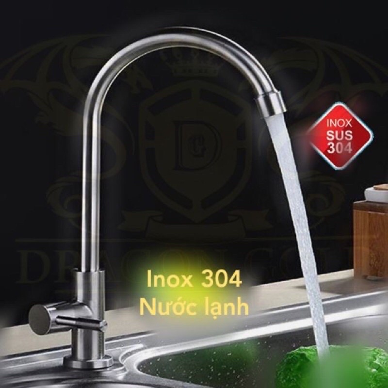 Vòi rửa bát inox, vòi rửa bát lạnh cần cứng cắm chậu inox sú 304 kèm dây cấp