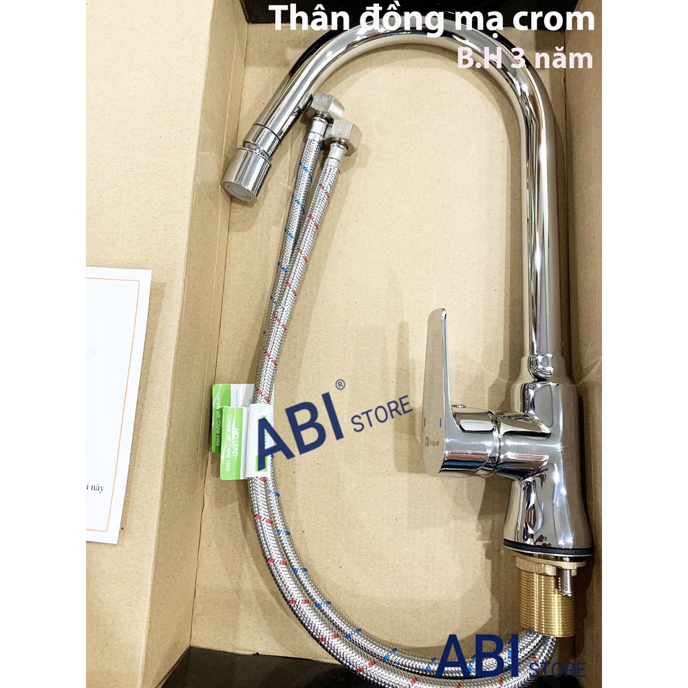 Vòi rửa bát nóng lạnh 2065 cần cứng, vòi chậu rửa chén thân đồng b.h 3 năm phiếu hãng