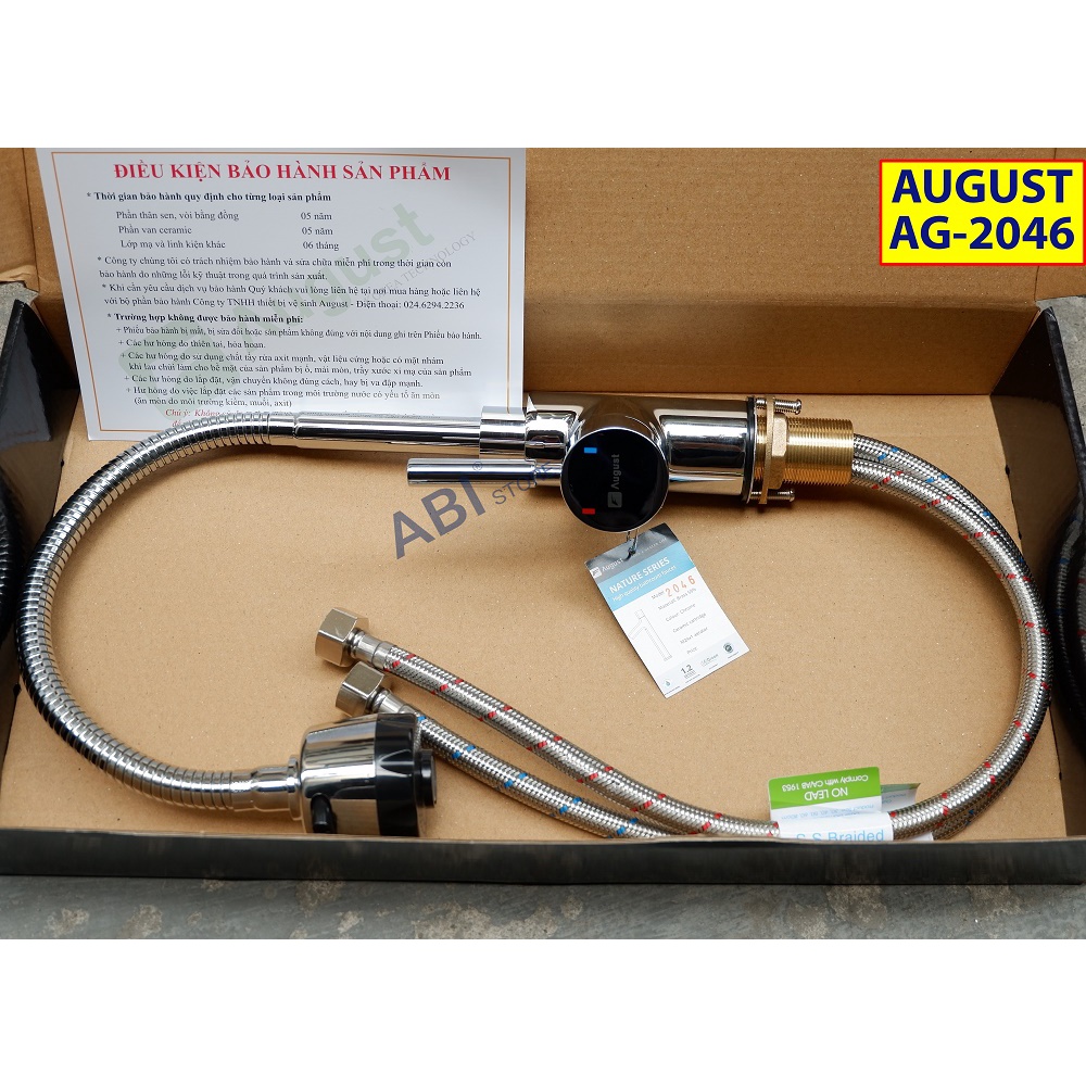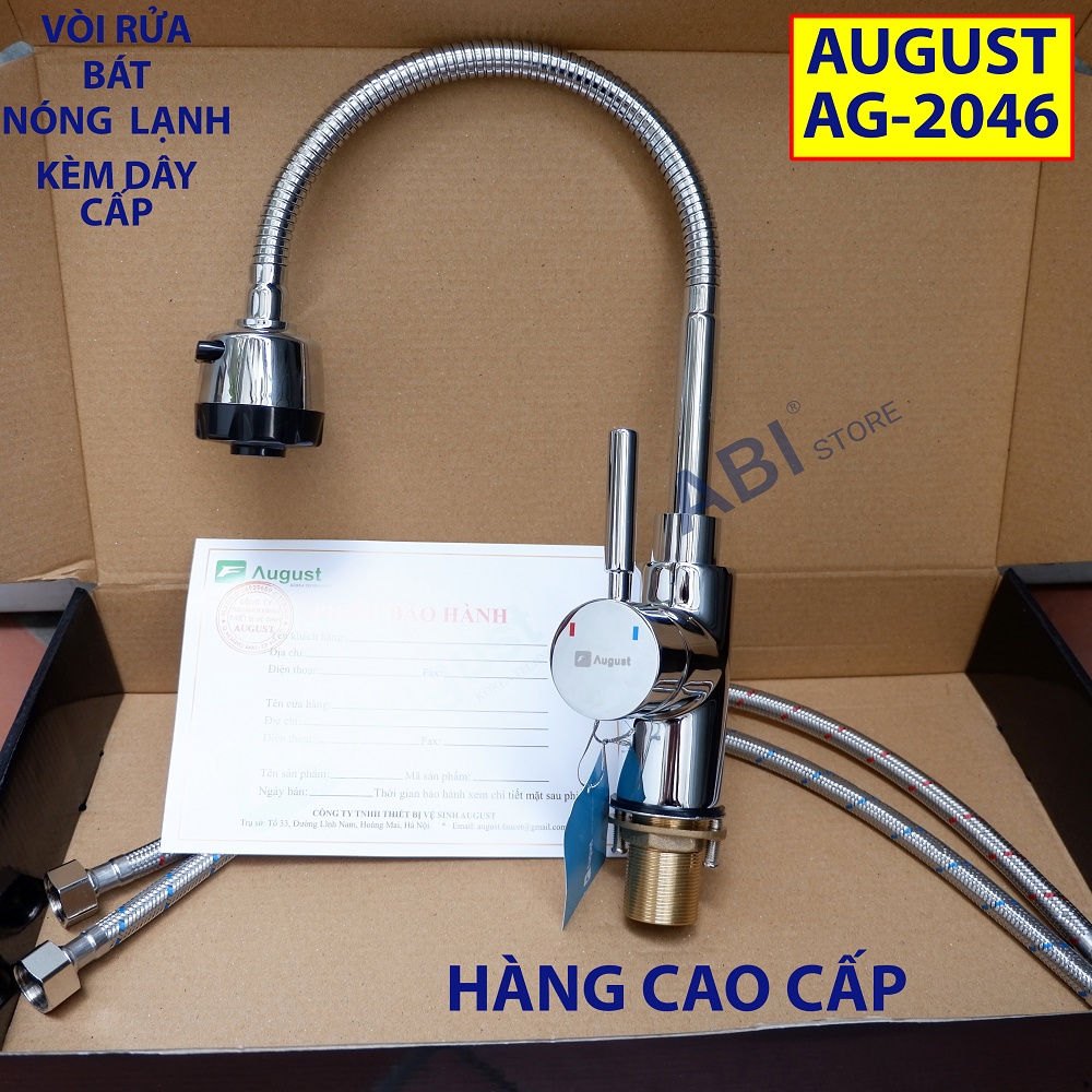 Giới thiệu Vòi rửa bát nóng lạnh AG2046 Việt Nam b.h 3 năm phiếu hãng, vòi chậu rửa chén cắm chậu cần mềm thân đồng mạ crom cao cấp