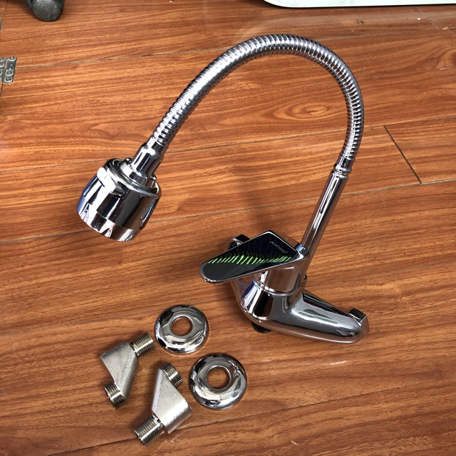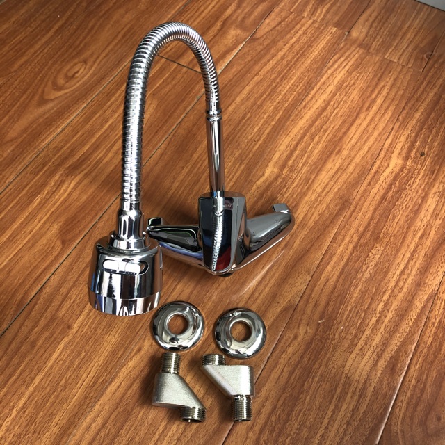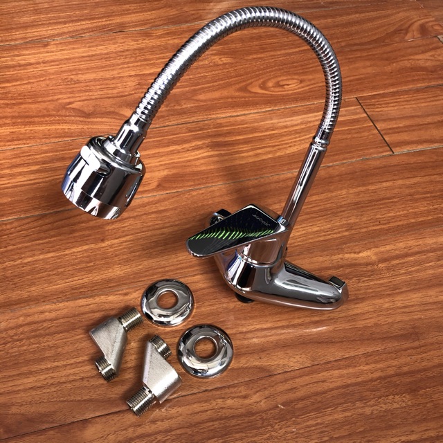 Vòi rửa bát nóng lạnh cắm tường, cần mềmChất liệu: củ vòi bằng đồng thau đúc mạ chrome sáng bóng