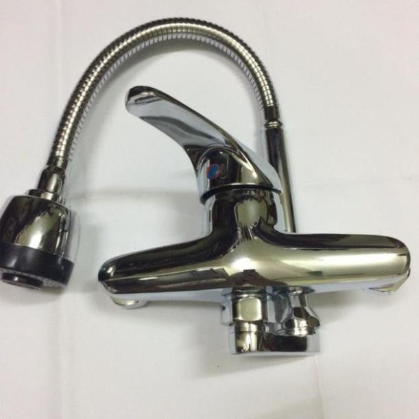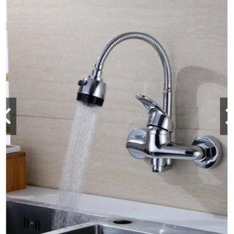Nhà cửa & Đời sống > Dụng cụ & Thiết bị tiện ích > Chậu rửa & vòi nước || Vòi rửa bát nóng lạnh gắn tường ( Đồng mạ Crom) dẻo, tăng áp 2 chế độCòn hàng