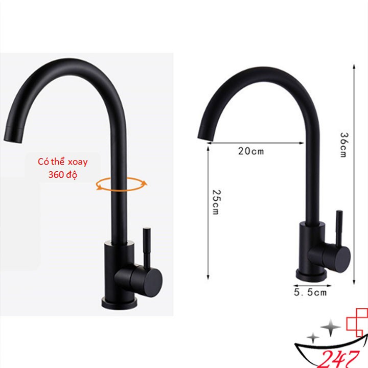 Vòi rửa bát inox sus 304 nóng lạnh sơn tĩnh điện công nghệ nano đen