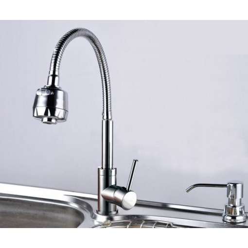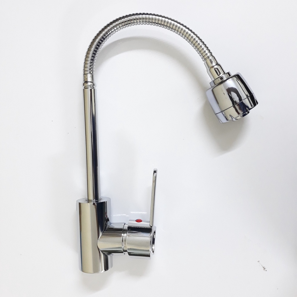 - Vòi bếp nóng lạnh (cổ mềm) có thể xoay 360 độ rất tiện lợi, dễ dàng xoay từ bồn rửa bên này sang bên kia với đĩa xoay siêu bền.