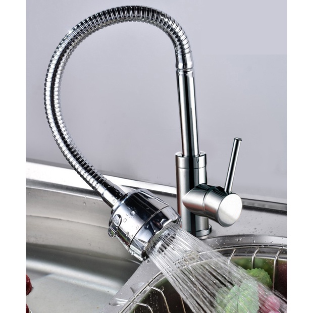 Nhà cửa & Đời sống > Dụng cụ & Thiết bị tiện ích > Chậu rửa & vòi nước || Vòi rửa bát nóng lạnh inox 304 màu bạc cao cấp loại cần mềm xoay 360 độ, 2 chế độ xả nước siêu bền chống gỉ - QM0053Còn hàng