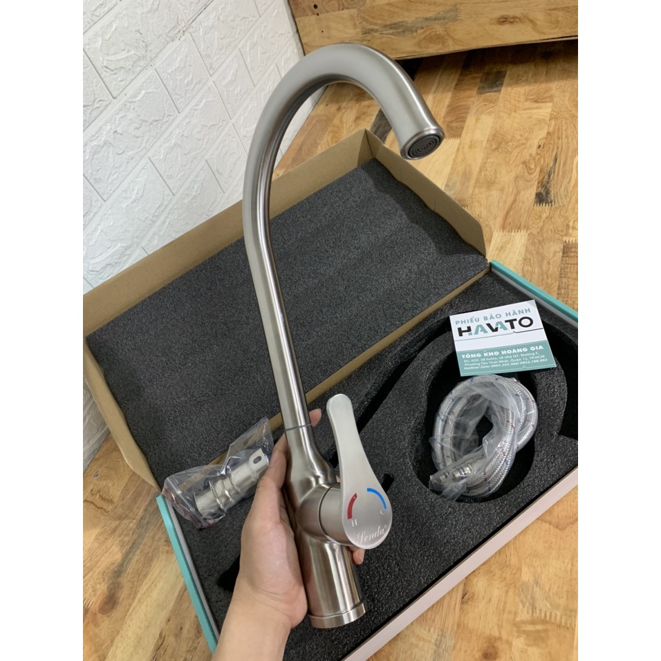 Vòi rửa bát nóng lạnh loại Tốt inox 304 Nặng 1kg8 (Tặng 2 dây cấp) tròn nóng lạnh, vòi rửa chén nóng lạnh tăng áp