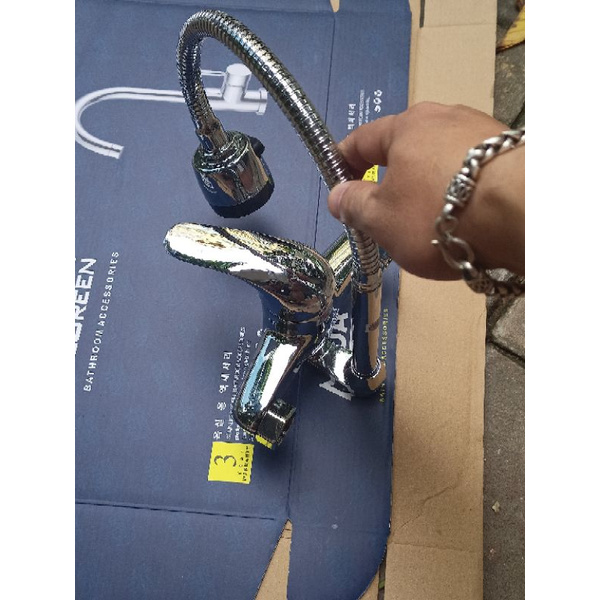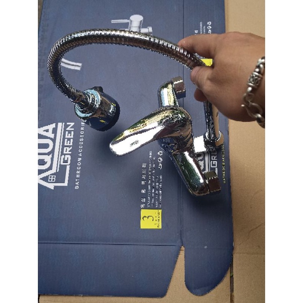 * Cách sử dụng và lắp đặt : Vòi nước rửa chén xoay được sang hai bên chỉ cần quay cần sang 2 bên mà không cần xoay cả củ . Không cần dây cấp nước vào vòi chỉ cần đấu nối với chân vòi rửa bát rồi lắp chân vòi rửa bát vào ren trong phi 21