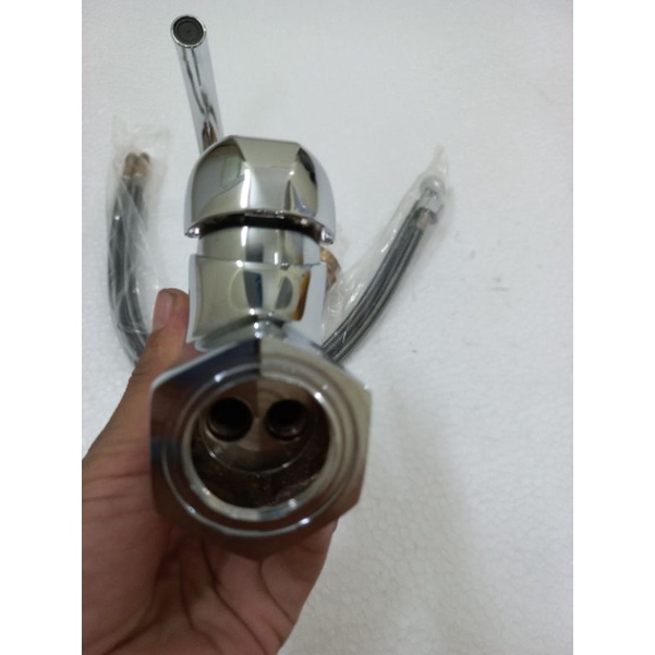 +Bộ sản phẩm gồm: vòi+cặp dây+chân đế gồm 1 vòi rửa chén nóng lạnh và 2 dây bằng inox 304 ( 1 dây nóng, 1 dây lạnh), sản phẩm đã đầy đủ khách chỉ việc lắp đặt