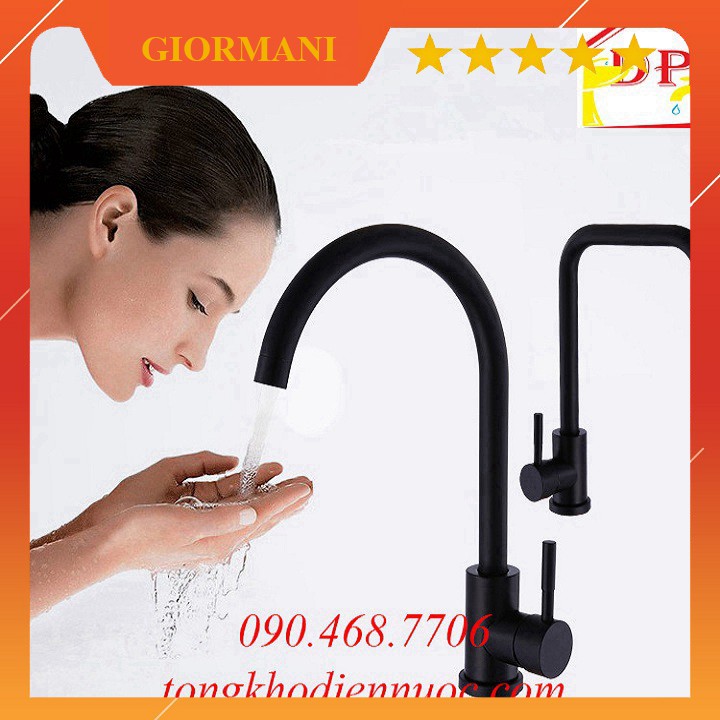 Vòi rửa bát, rửa chén inox 304 nóng lạnh màu đen cao cấp GIORMANI VRB23 - tặng đôi dây inox