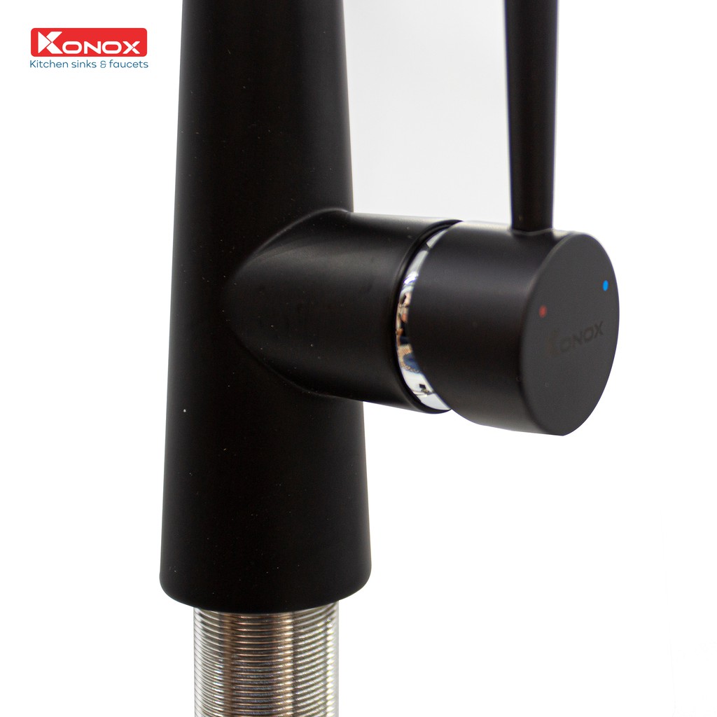 Thân vòi xoay linh hoạt 360 độ với cơ cấu khớp xoay mượt mà nhờ kết nối thân đồng tiêu chuẩn. Konox trang bị đồng bộ định hướng dòng chảy từ thương hiệu số 1 về giải pháp phụ kiện vòi nước tại Thụy Sĩ giúp tiết kiệm nước đồng thời tạo bọt khí chống bắn nước mang lại trải nghiệm tuyệt vời cho người dùng.