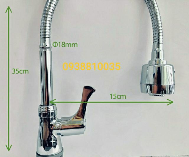 Thiết kế dạng lò xo, điều chỉnh thoải mái, xoay 360 độ phù hợp với nhiều vị trí sử dụng nơi bồn rửa chén.