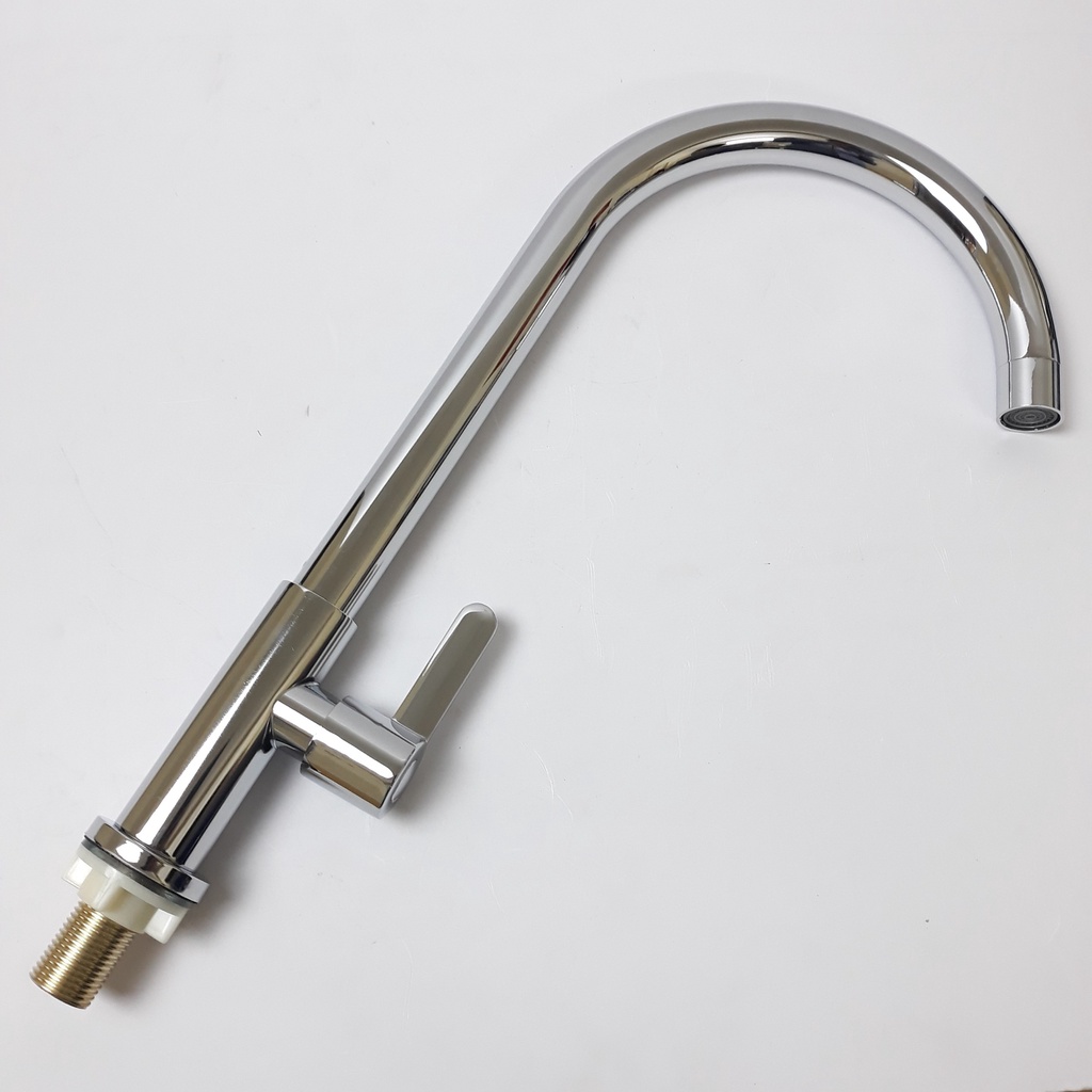 Vòi rửa chén bát 1 đường nước lạnh inox thân cứng mạ màu bạc cao cấp, sáng bóng, sang trọng