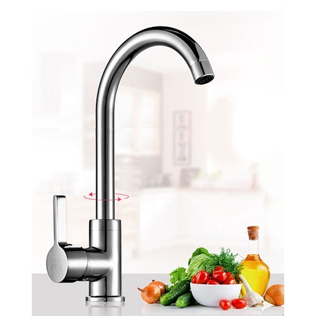- Vòi rửa bát 1 đường nước lạnh làm từ inox SUS304 mạ màu bạc không gỉ, có chất lượng tốt, tiện lợi khi sử dụng.