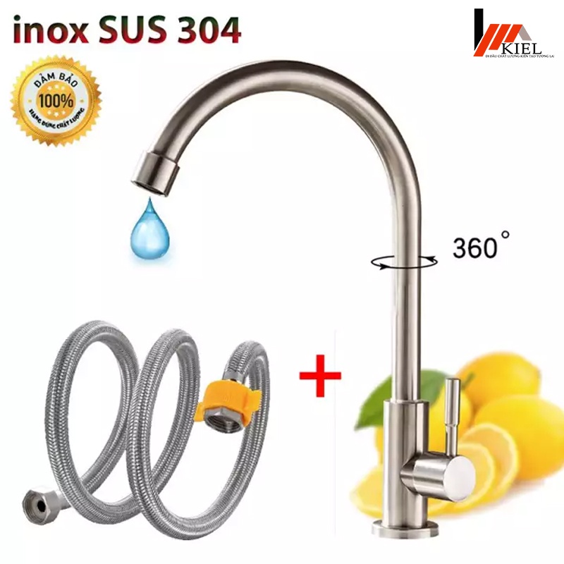 Vòi rửa chén bát 1 đường nước - vòi chậu rửa bát đơn lạnh inox 304 cao cấp .