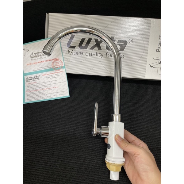 Nhà cửa & Đời sống > Dụng cụ & Thiết bị tiện ích > Chậu rửa & vòi nước || Vòi rửa chén bát cần cong tay gạt lạnh Luxta L3114WT3 sơn tích điện chính hãngCòn hàng