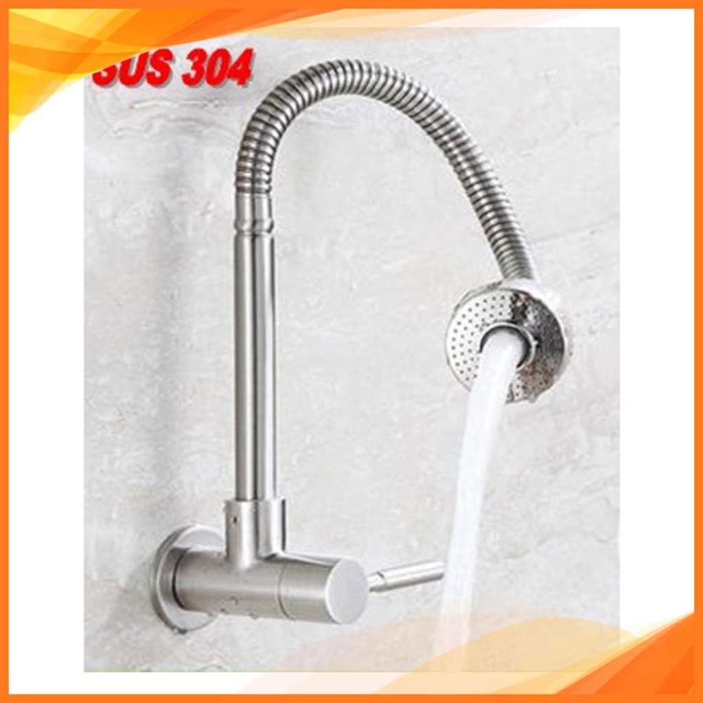 Vòi rửa chén bát đơn lạnh cần mềm cắm tường inox 304 xoay 360 độ (vòi bếp, vòi rửa bát )