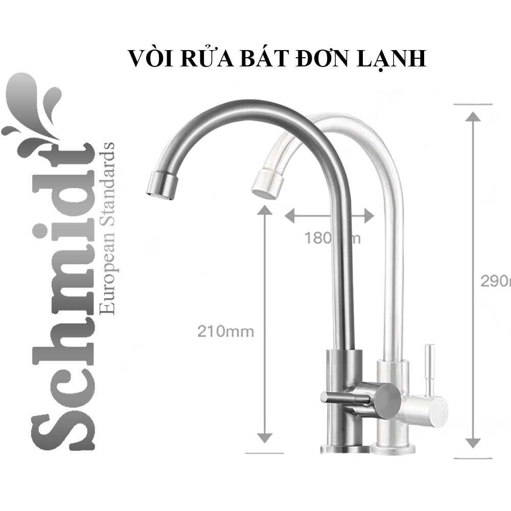 Vòi Rửa Chén Đơn Lạnh Schmidt Inox 304 Vòi Rửa Chén Bát Thiết Kế Kiểu Dáng Tinh Tế Sang Trọng Hiện Đại – Hàng Chính HãngThông số kĩ thuật: