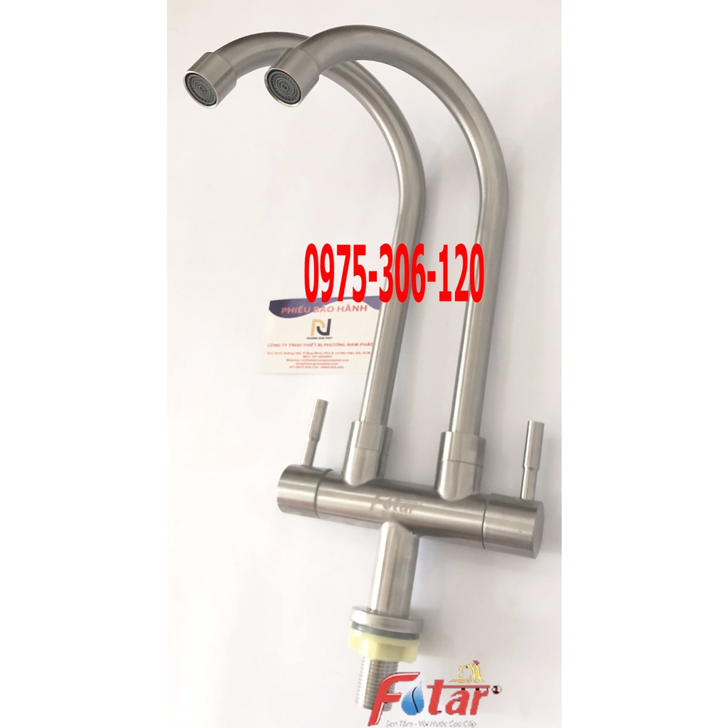 Vòi Rửa Chén Bát Lạnh ĐÔI Inox 304 N5027 dùng cho 2 hộc chậuDùng cho nước lạnh, không dùng cho nước nóng lạnh được