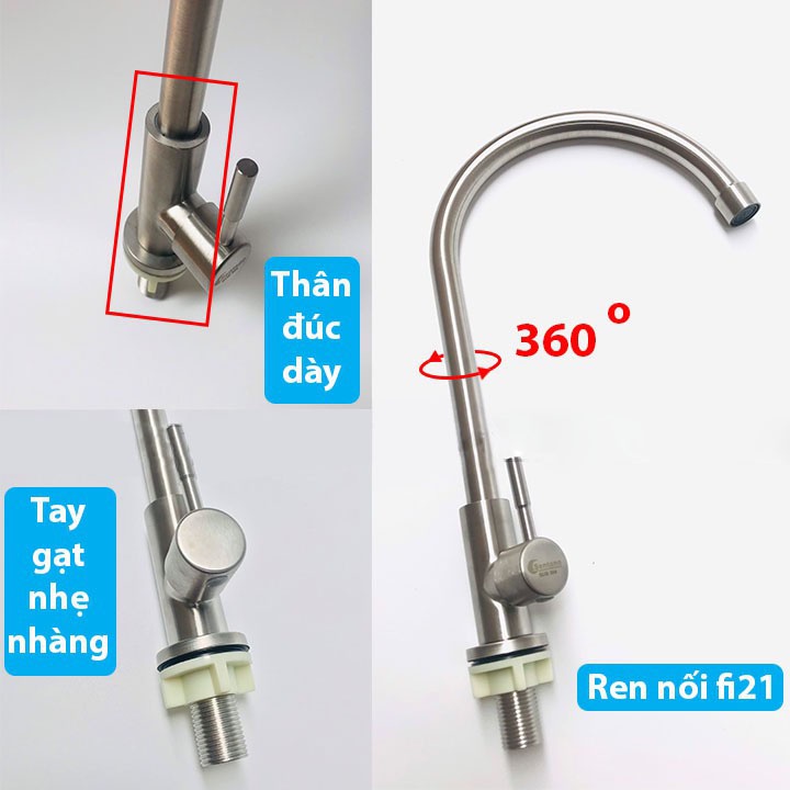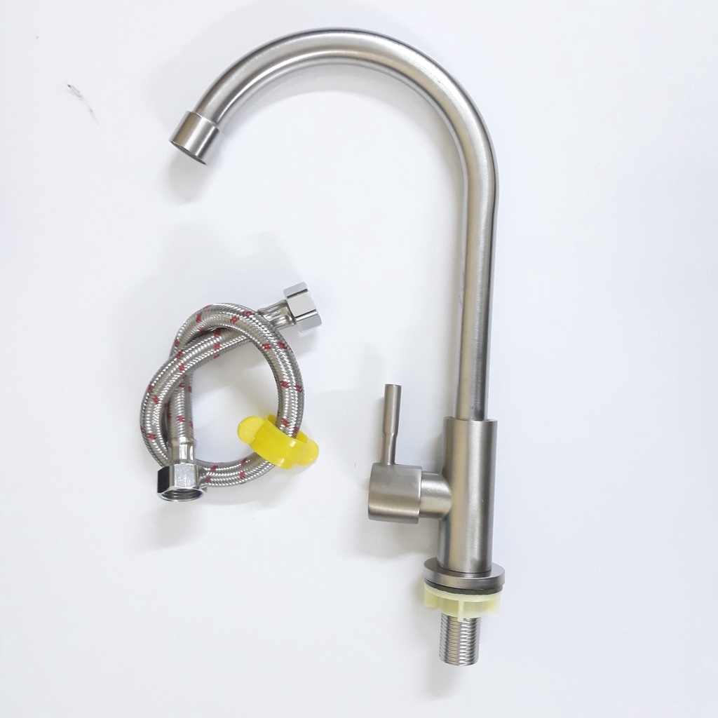 Vòi Rửa Chén Bát Lạnh Inox 304 quay 360 độ dùng cho 2 hộc chậuSử dụng cho 1 đường nước lạnh