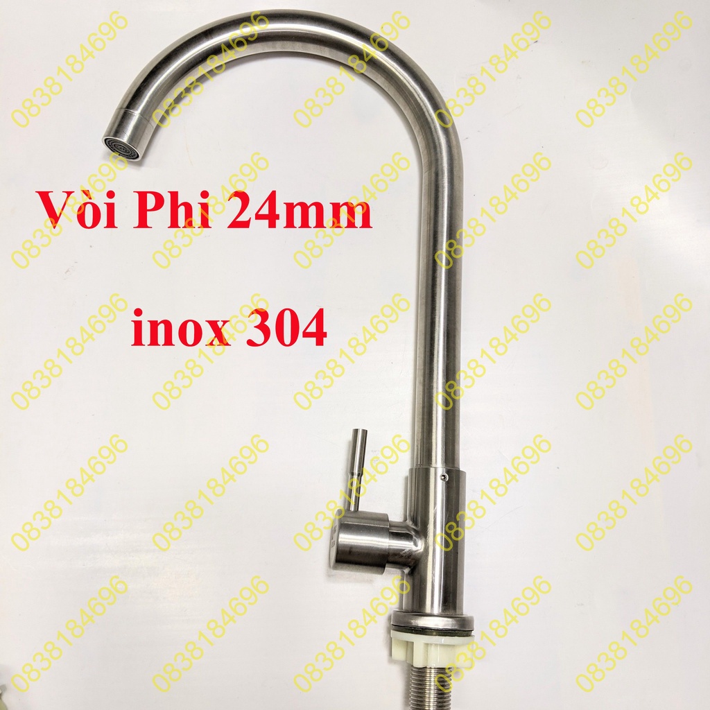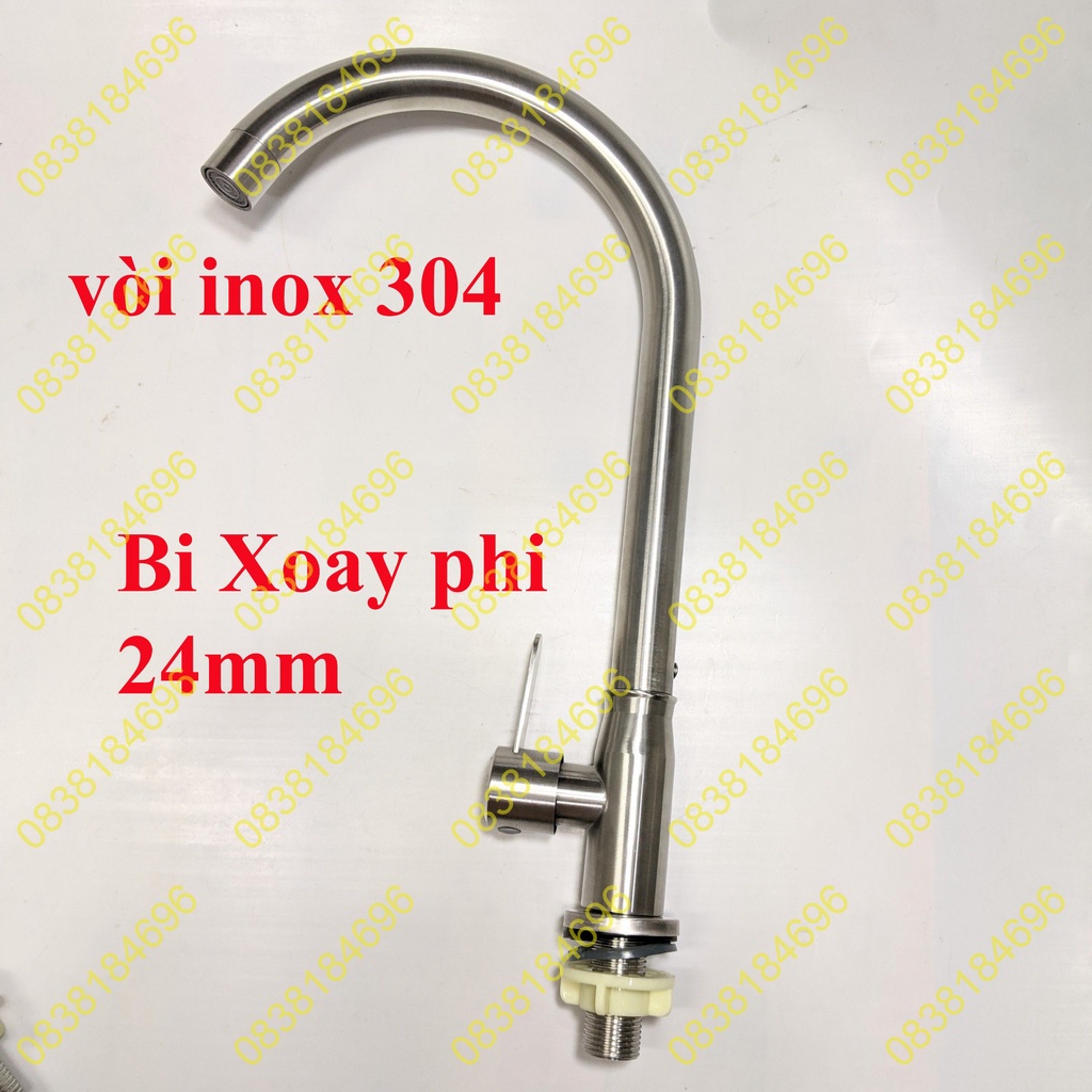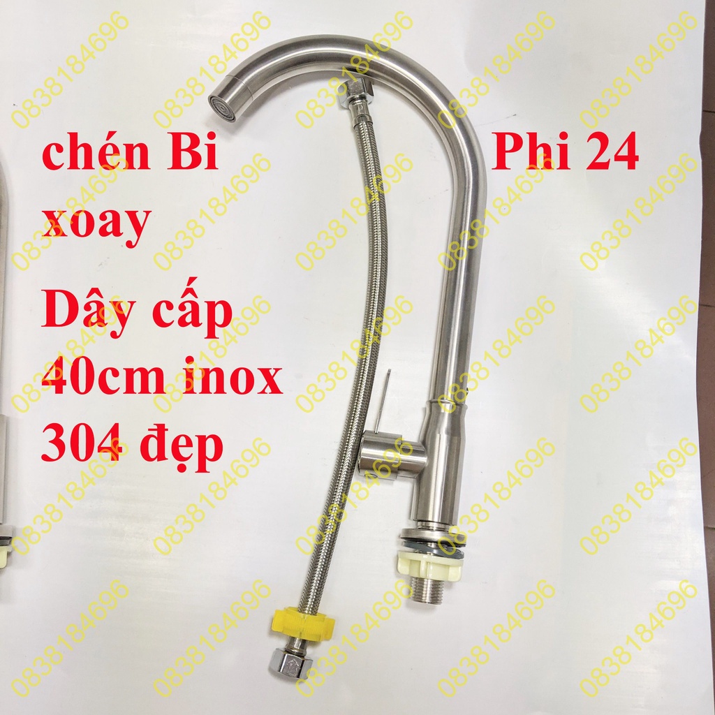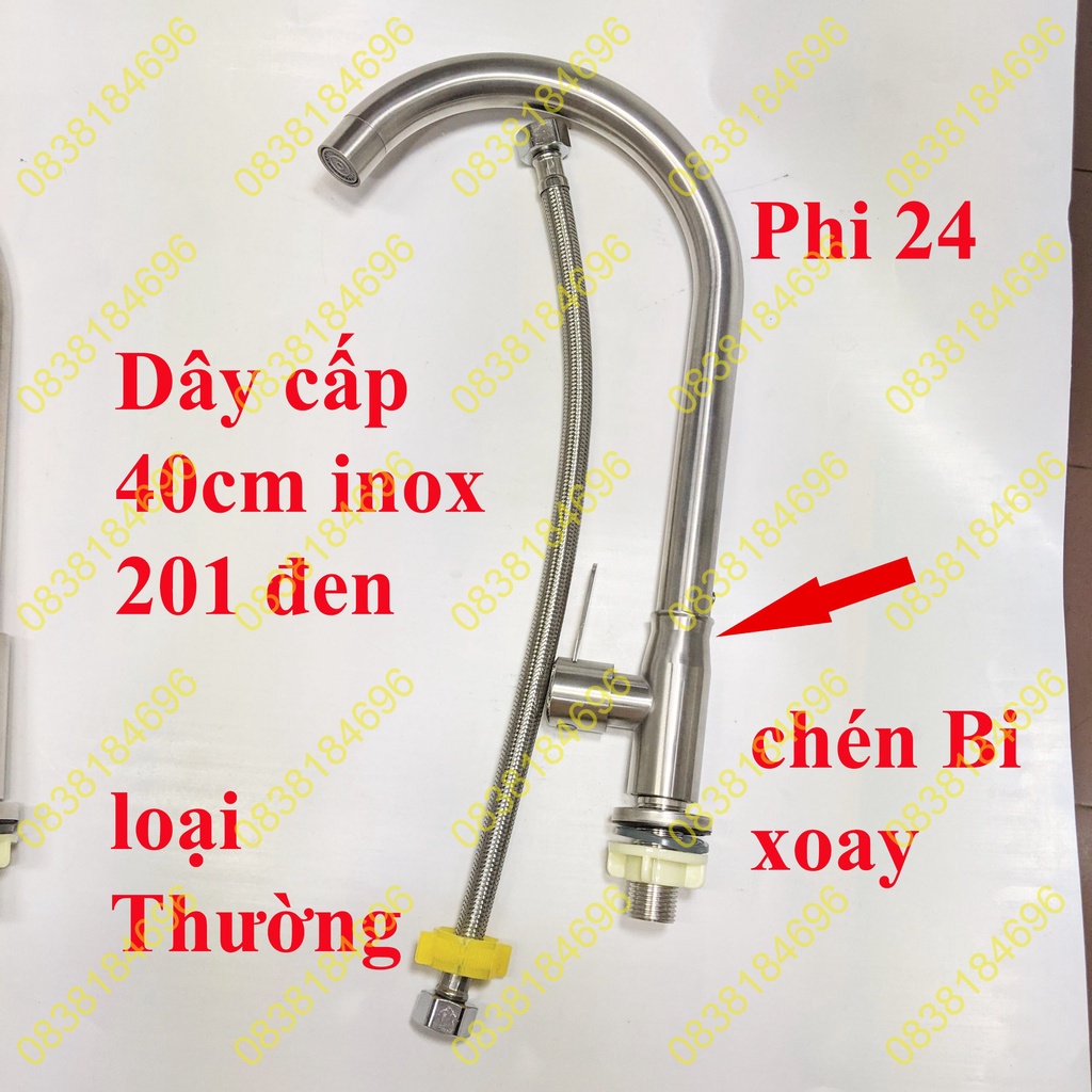 -Vòi rửa chén inox lạnh phi 24 xoay 360 độ