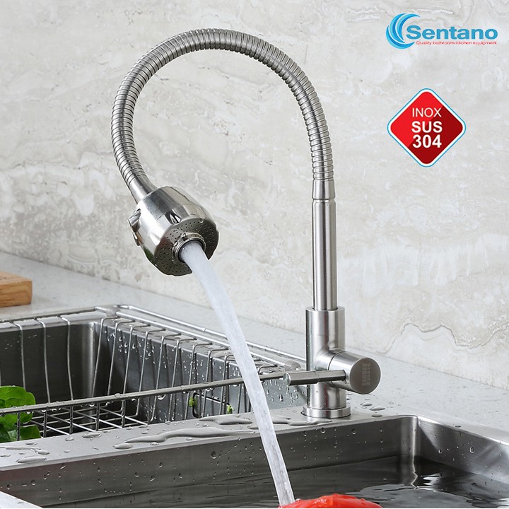 Vòi rửa chén lạnh inox 304 cần lò xò uốn xoay 360, 100% inox 304 không gỉ* Vòi bếp chất liệu inox 304 cao cấp không gỉ
