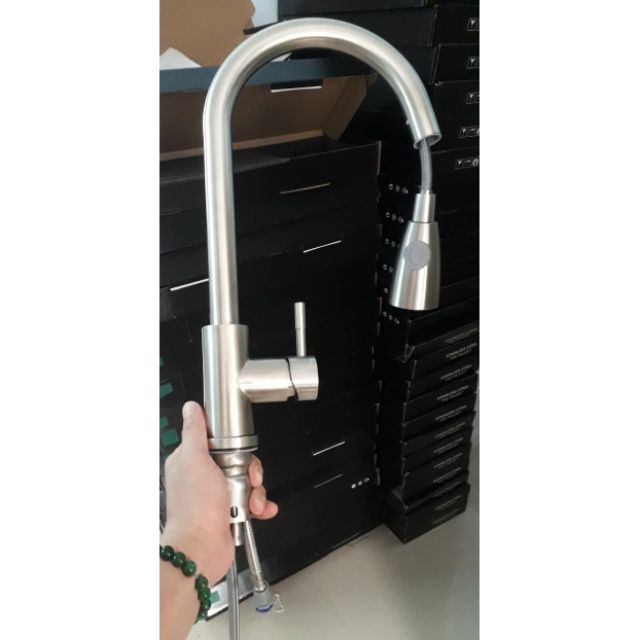 Nhà cửa & Đời sống > Dụng cụ & Thiết bị tiện ích > Chậu rửa & vòi nước || Vòi rửa chén bát nóng lạnh dây rút inox 304. TẶNG DÂY CẤP NƯỚCCòn hàng