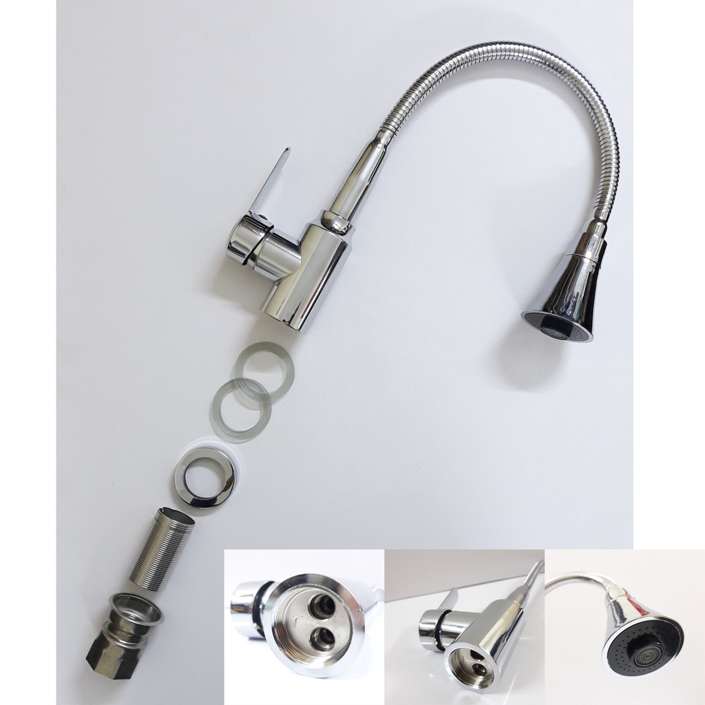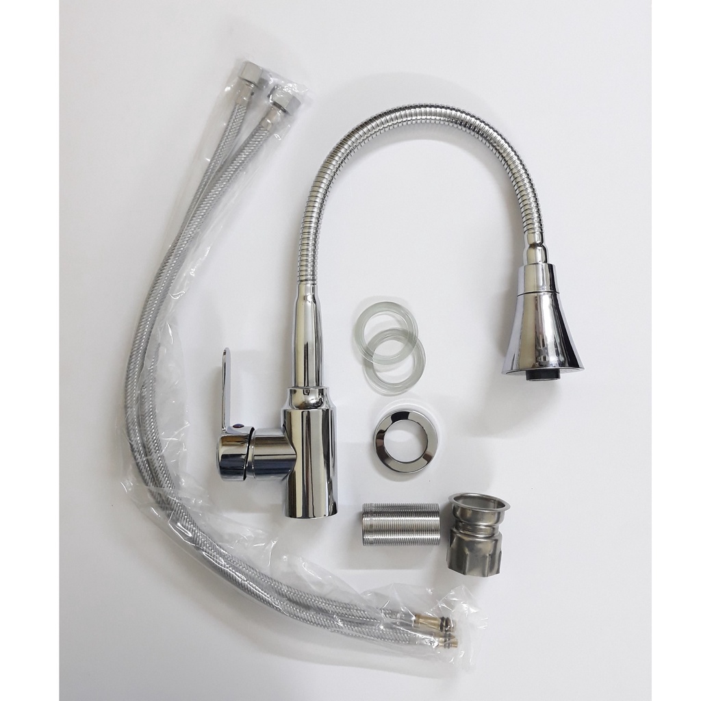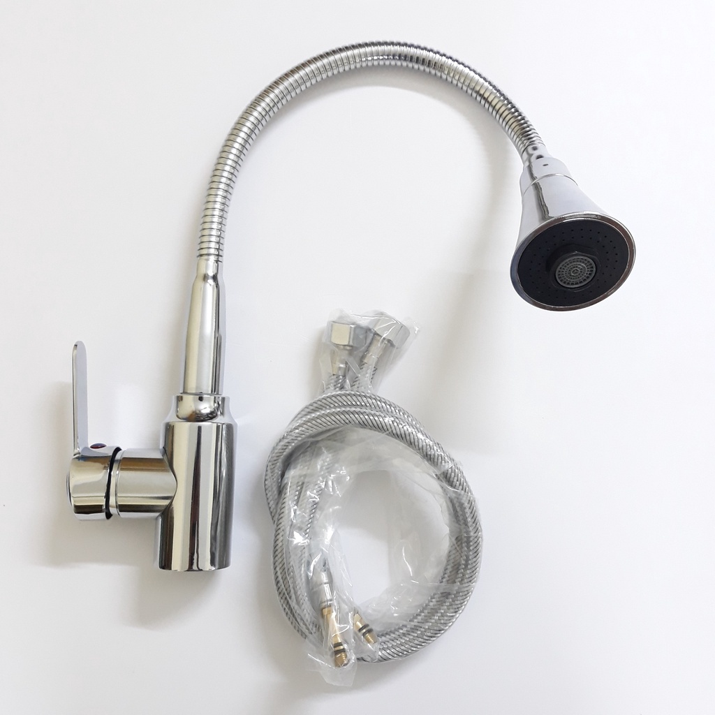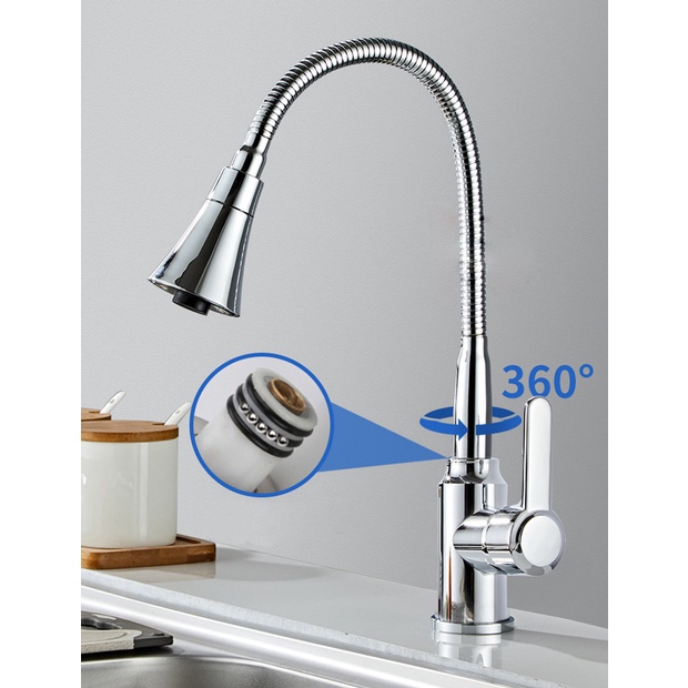 Nhà cửa & Đời sống > Dụng cụ & Thiết bị tiện ích > Chậu rửa & vòi nước || Vòi rửa chén bát nóng lạnh inox 304 loại cần mềm cổ bi xoay 360 độ, đầu vòi hình nón 2 chế độ xả nướcCòn hàng