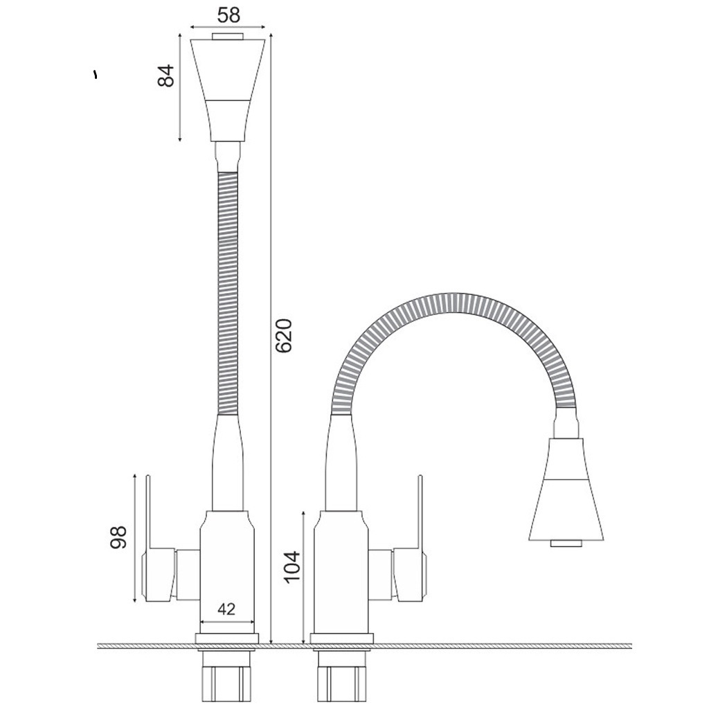 Nhà cửa & Đời sống > Dụng cụ & Thiết bị tiện ích > Chậu rửa & vòi nước || Vòi rửa chén bát nóng lạnh inox 304 loại cần mềm cổ bi xoay 360 độ, đầu vòi hình nón 2 chế độ xả nướcCòn hàng