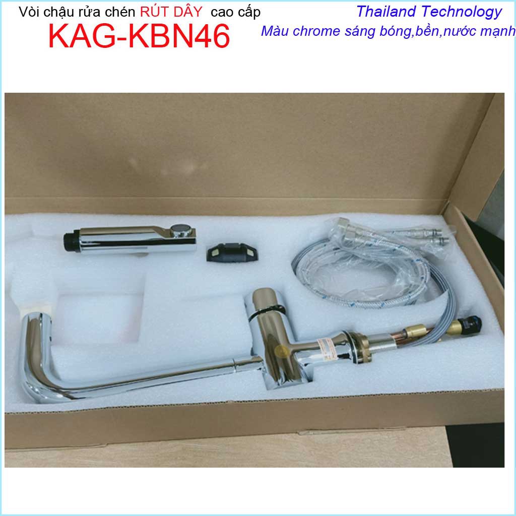 Vòi rửa chén bát rút dây KAG-KBN46, Vòi Proxia nóng lạnh Chrome bóng, vòi bếp nóng lạnh chậu rửa chén ProxiaChất liệu: Vòi Proxia bằng đồng Chrome- Niken bóng