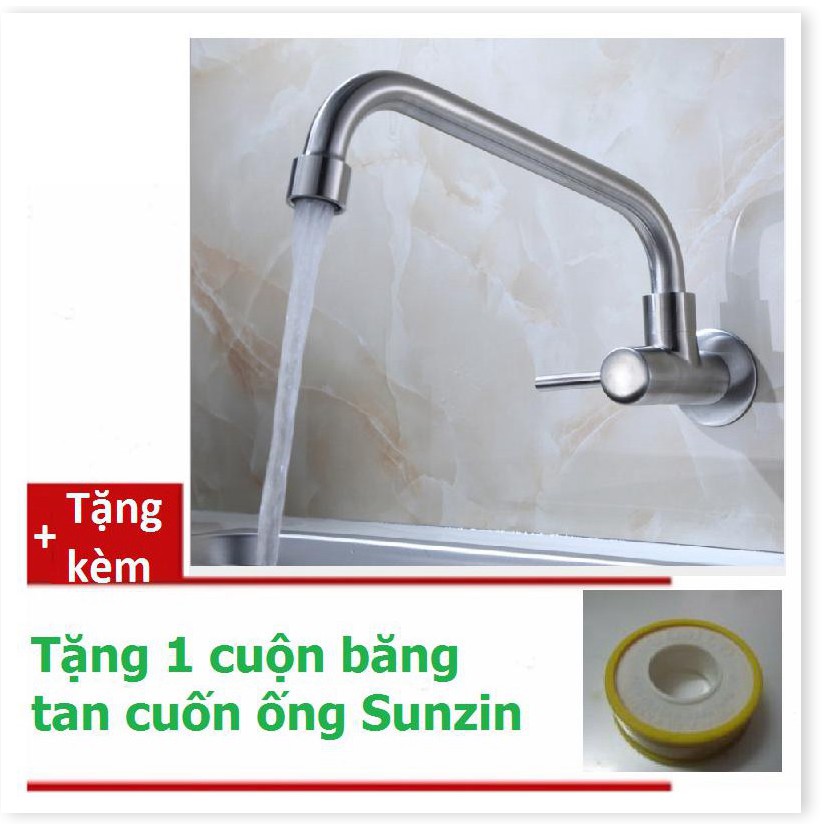 Vòi rửa chén cắm tường đơn cần quay inox 304, tặng thêm 1 cuộn băng tan