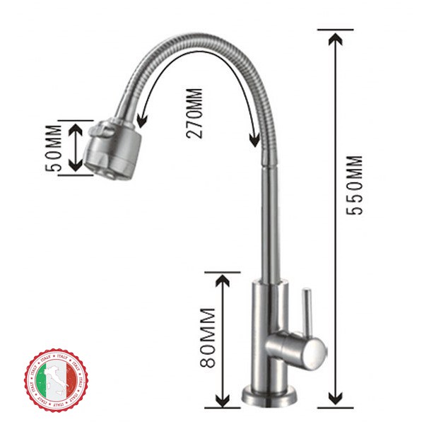 Vòi rửa chén (chỉ lạnh, cổ mềm) SUS304 - Hàng Cao cấp ITALIA (kèm dây cấp nước)