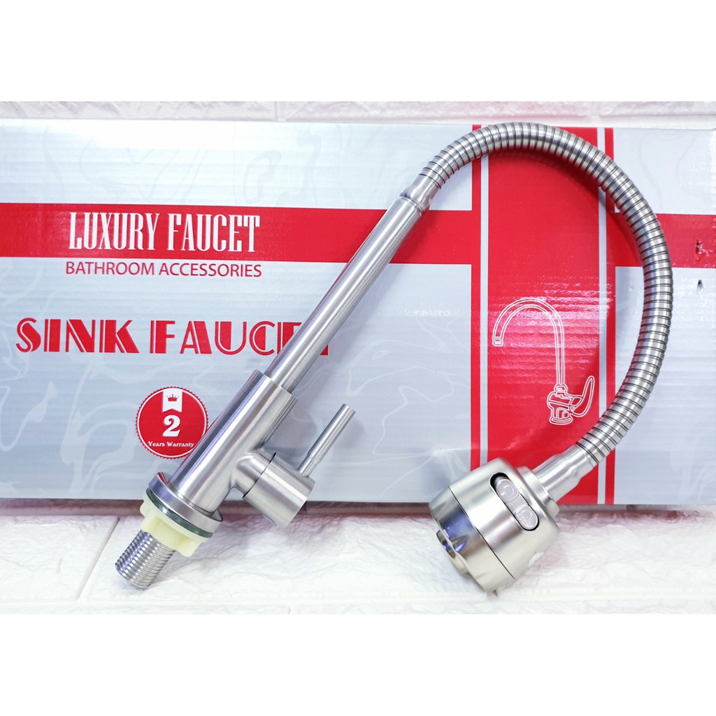 Vòi rửa chén lạnh Inox SUS 304 cần lò xo,có thể quay 360 độ quay 2 chậu rửa