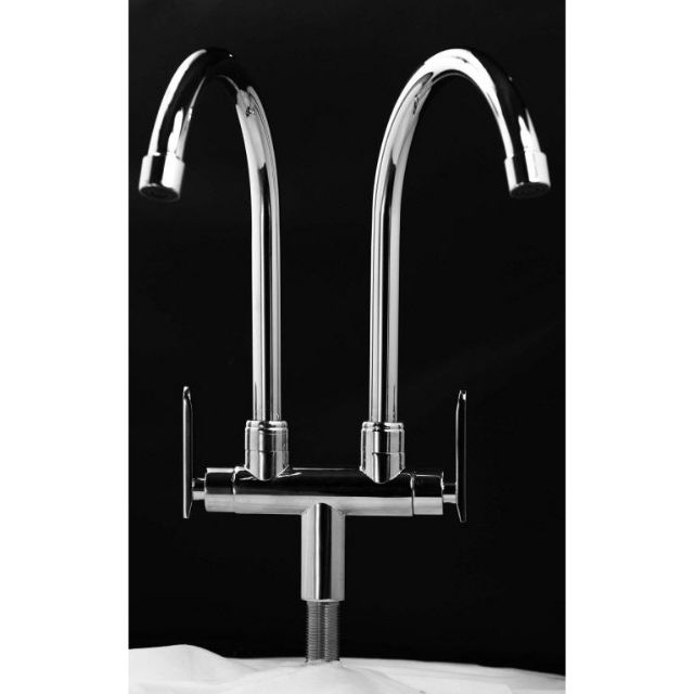 Vòi rửa chén đôi sử dụng cho một chế độ nước, được thiết kế với kiểu dáng độc đáo 2 vòi riêng biệt giúp việc rửa chén bát được nhanh chóng và dễ dàng, thuận tiện hơn. Sản phẩm vòi rửa chén đôi được làm từ hợp kim thau, bên ngoài được phủ lớp chrome và niken giúp vòi luôn sáng bóng, sạch sẽ. Sản phẩm phù hợp với các chậu rửa chén 2 hộc. Thích hợp cho các quán nước, nhà hàng, quán ăn, gia đình...Thông tin sản phẩm: