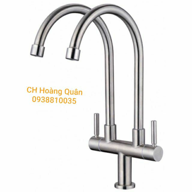 Vòi rửa chén đôi sử dụng cho một chế độ nước, được thiết kế với kiểu dáng độc đáo 2 vòi riêng biệt giúp việc rửa chén bát được nhanh chóng và dễ dàng, thuận tiện hơn. Sản phẩm vòi rửa chén đôi được làm từ Inox Sus 304 bền, chống rỉ sét và không bị ăn mòn theo thời gian. Sản phẩm phù hợp với các chậu rửa chén 2 hộc. Thích hợp cho các quán nước, nhà hàng, quán ăn, gia đình...Thông tin sản phẩm:
