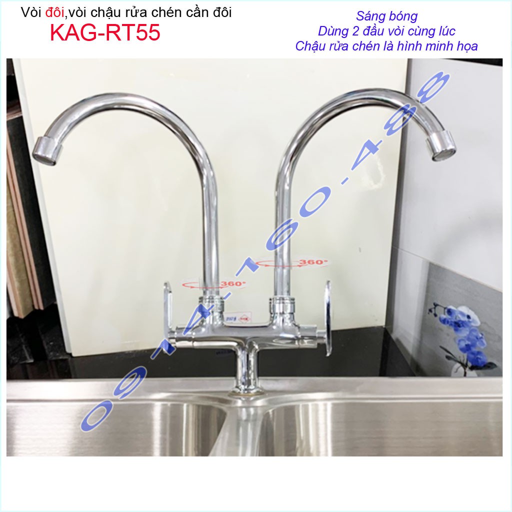 Vòi rửa chén đôi KAG-RT55, vòi chậu 2 hộc, vòi rửa chén bát lạnh 2 đầu vòi nước mạnh sử dụng tốt
