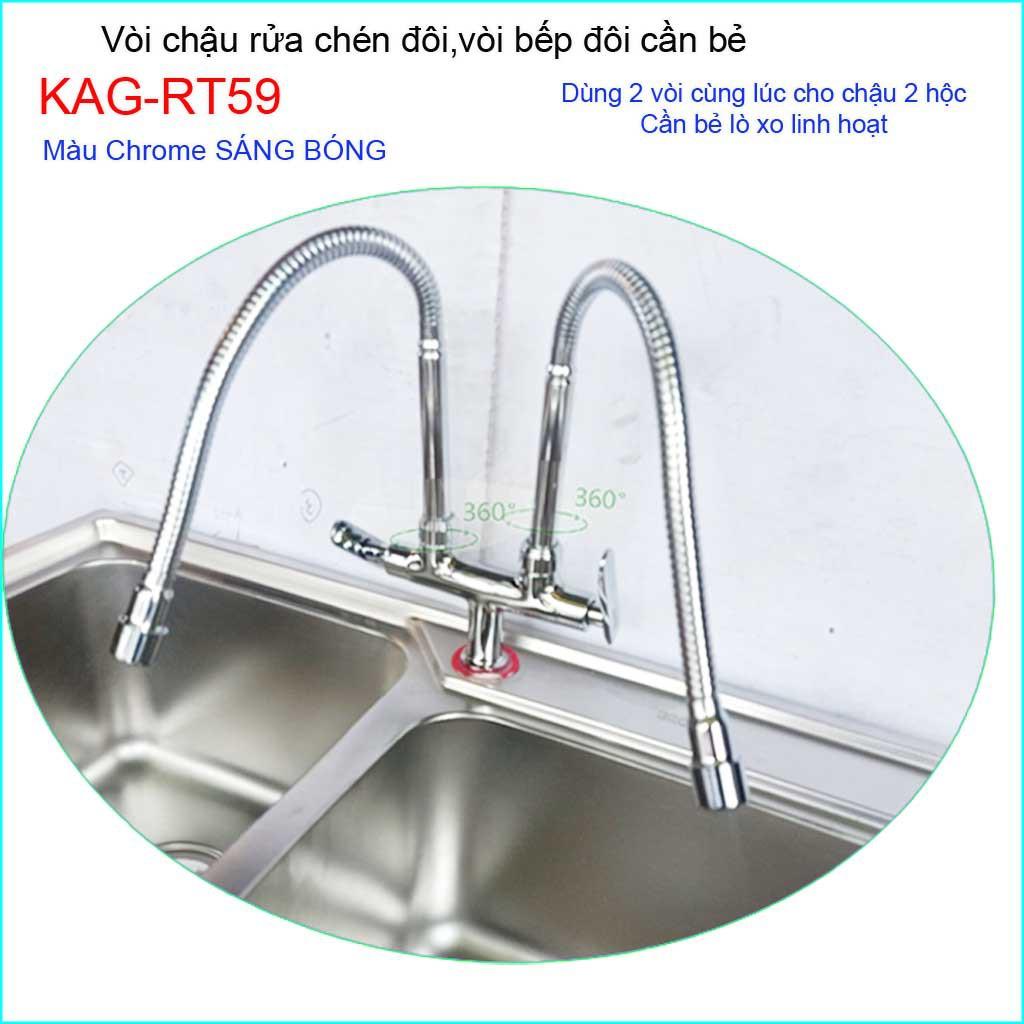 Vòi rửa chén đôi lò xo KAG-RT59, vòi rửa chén lạnh cần bẻ, vòi chậu 2 hộc, vòi rửa chén bát lò xo nước mạnh sử dụng tốt Vòi bếp đôi KAG-RT59A có 2 đầu vòi nước chuyên dùng cho chậu chén ...- Giao hàng toàn quốc