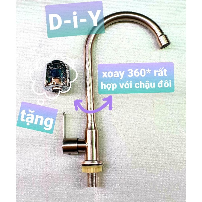 - Vòi Inox 304 cổ bi xoay 360*, cổ bi (dễ dàng xoay cổ vòi qua lại một cách nhẹ nhàng, rất thích hợp dùng cho chậu rửa chén 2 hộc)