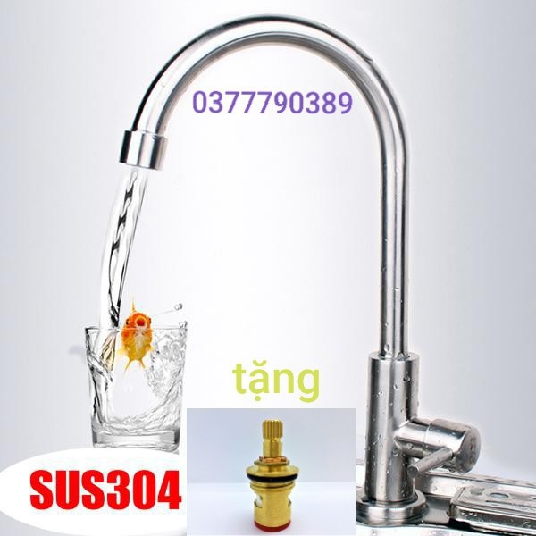 vòi rửa chén inox tặng kèm ruột thay