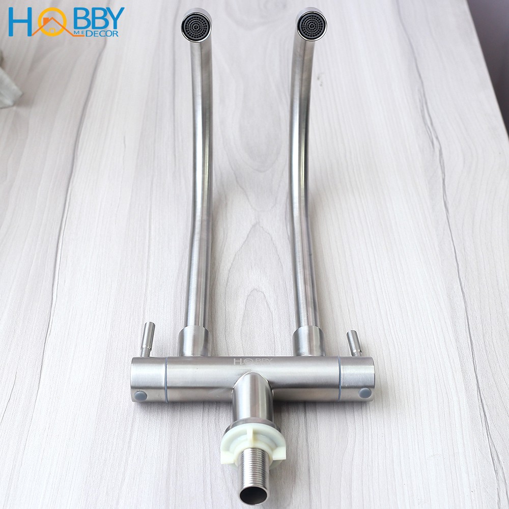 Vòi rửa chén lạnh 2 đầu Inox 304 HOBBY RC2D cao cấp không rỉ sét