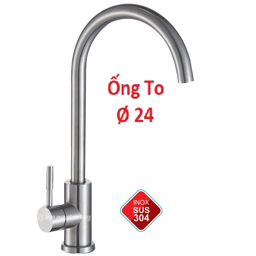Vòi rửa chén lạnh cao cấp inox304, ống lớn phi 24 cong. Bảo hành 36 tháng