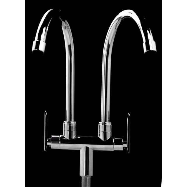 Vòi rửa chén đôi sử dụng cho một chế độ nước, được thiết kế với kiểu dáng độc đáo, hai vòi riêng biệt giúp việc rửa chén bát được nhanh chóng và dễ dàng, thuận tiện hơn. Vòi rửa chén đôi được làm từ hợp kim thau, bên ngoài được phủ một lớp inox giúp vòi luôn sáng bóng, sạch sẽ. Sản phẩm phù hợp với các chậu rửa chén 2 hộc. Thích hợp cho các quán nước, nhà hàng, quán ăn, gia đình...