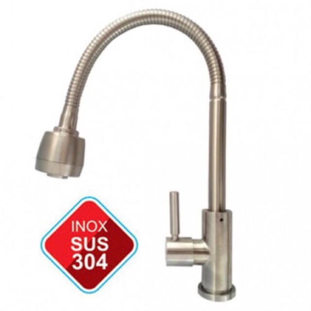 Vòi rửa chén lạnh inox 304 cần lò xò uốn xoay 360, 100% inox 304 không gỉ* Vòi bếp chất liệu inox 304 cao cấp không gỉ