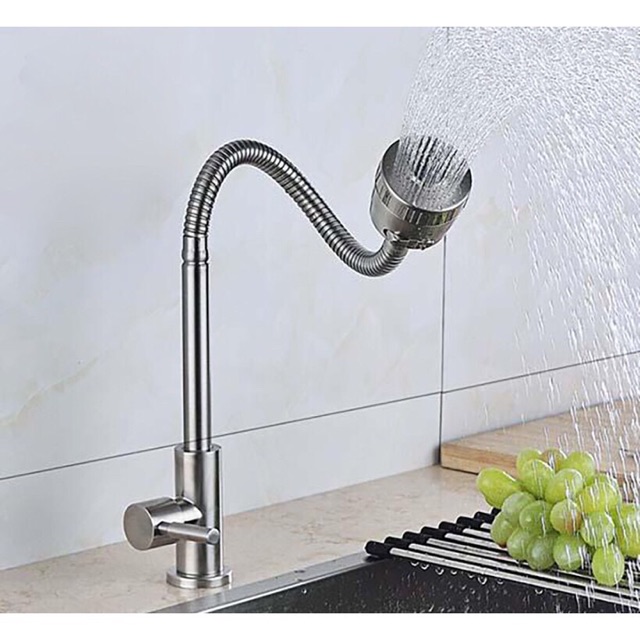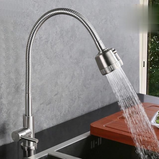 Nhà cửa & Đời sống > Dụng cụ & Thiết bị tiện ích > Chậu rửa & vòi nước || Vòi rửa chén lạnh inox 304 không gỉ, cần mềm bẻ xoay 360 linh hoạt điều chỉnh 2 chế độ như hình ảnhCòn hàng