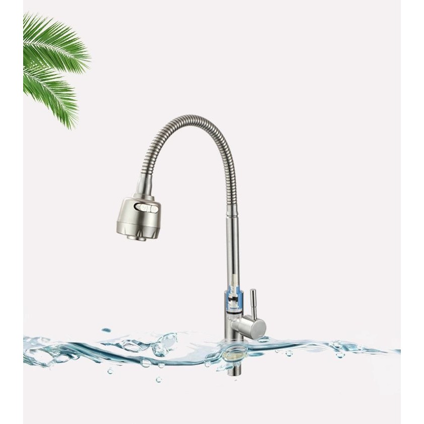 Vòi rửa chén đơn lạnh Sus 304 cần lò xò uốn xoay 360, 100% inox 304 không gỉ