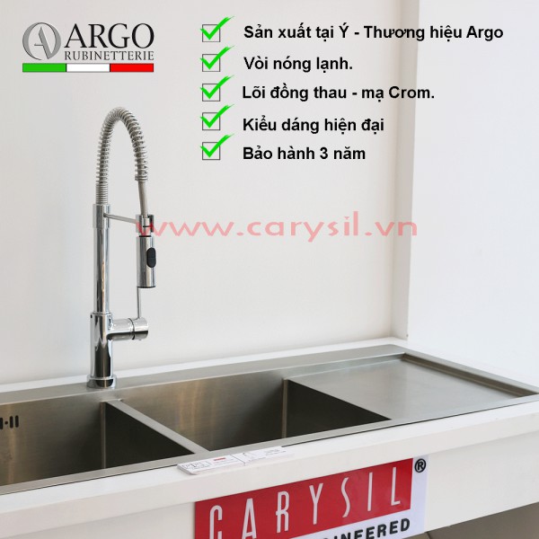 Hãy trải nghiệm cùng sản phẩm thương hiệu vòi rửa chén cao cấp Argo-Italy tại Carysil Việt Nam để cảm nhận giá trị chúng tôi mang lại cho khách hàng. Chất lượng đồng bộ, uy tín và dịch vụ hậu mãi tốt là cam kết của Carysil Việt Nam đến với quý khách hàng.