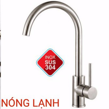 Vòi rửa chén nóng lạnh inox304 cong lớn, vòi rửa bát inox304 nóng lạnh bảo hành 3 năm