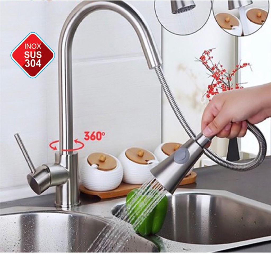 Nhà cửa & Đời sống > Dụng cụ & Thiết bị tiện ích > Chậu rửa & vòi nước || Vòi rửa chén nóng lạnh rút dây Inox 304Còn hàng