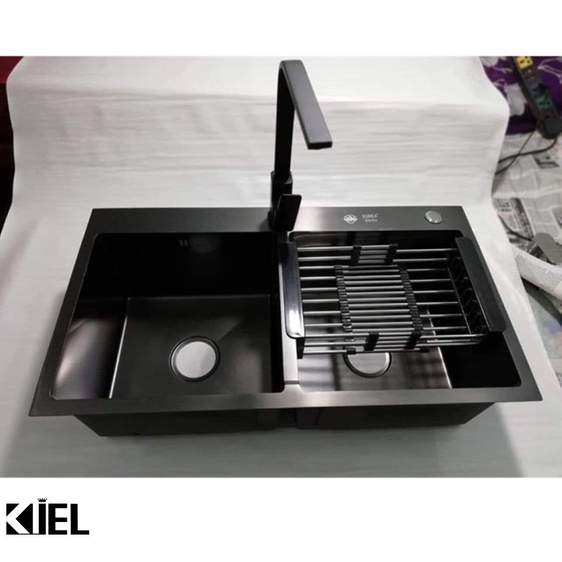 Giới thiệu Vòi rửa chén nóng lạnh sơn đen tĩnh điện inox 304 xoay 360 gắn chậu rửa chén inox ( Kiểu vuông)
