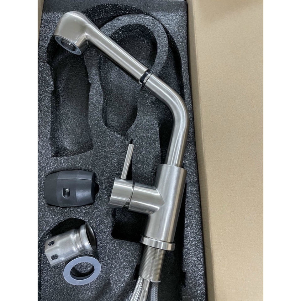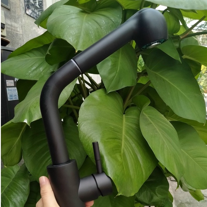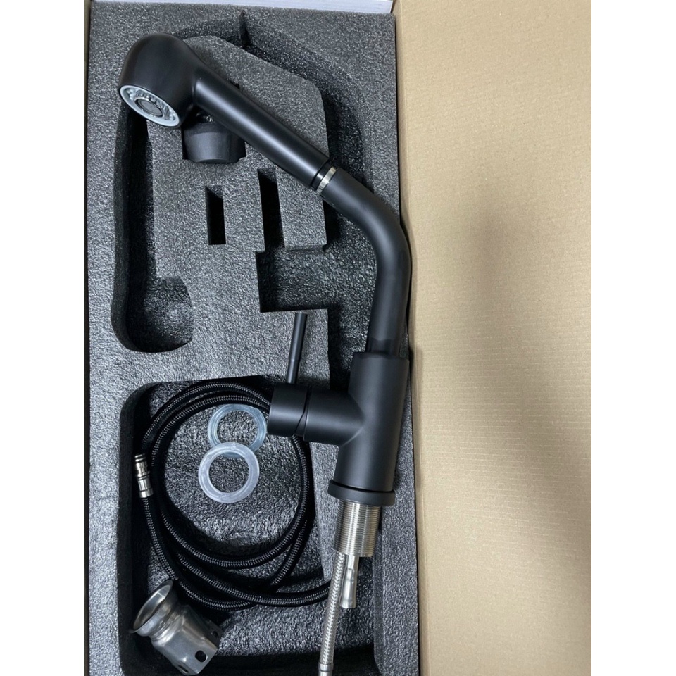 Nhà cửa & Đời sống > Dụng cụ & Thiết bị tiện ích > Chậu rửa & vòi nước || Vòi rửa chén Vòi rửa bát nóng lạnh dây rút INOX phủ NaNo màu đenCòn hàng