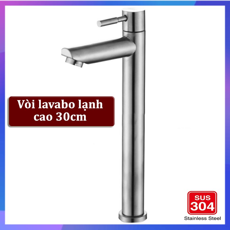 Vòi Rửa Mặt Lavabo Lạnh 100% inox 304 cao cấp – Vòi lavabo điếu lạnh inox tốt mũi thẳng cao