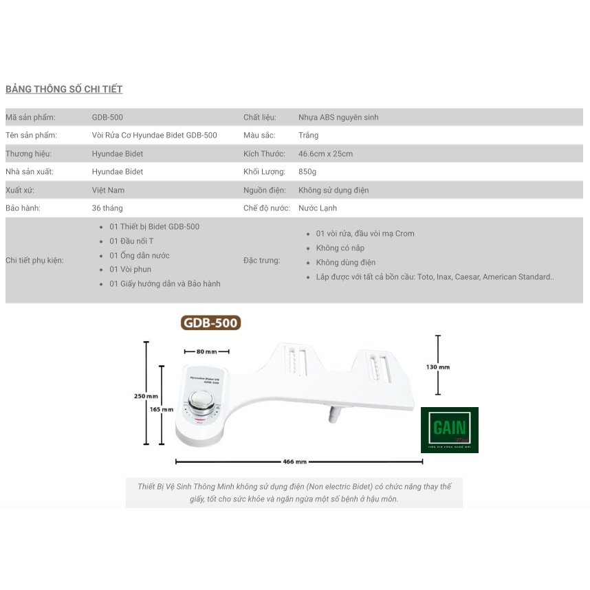 Giới thiệu Vòi rửa vệ sinh thông minh Hyundae bidet GDB500, BH 3 Năm, đổi lỗi 15 Ngày, không dùng điện, tự rửa vòi xịt